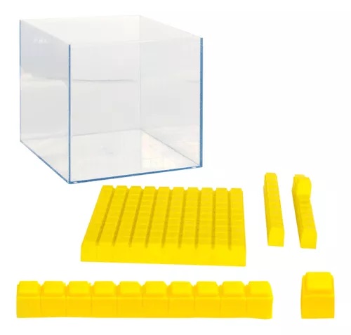 representación física de las unidades, decenas y centenas dentro de un cubo