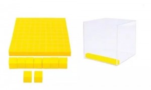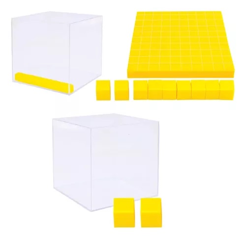 representación física de las unidades, decenas y centenas dentro de un cubo