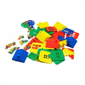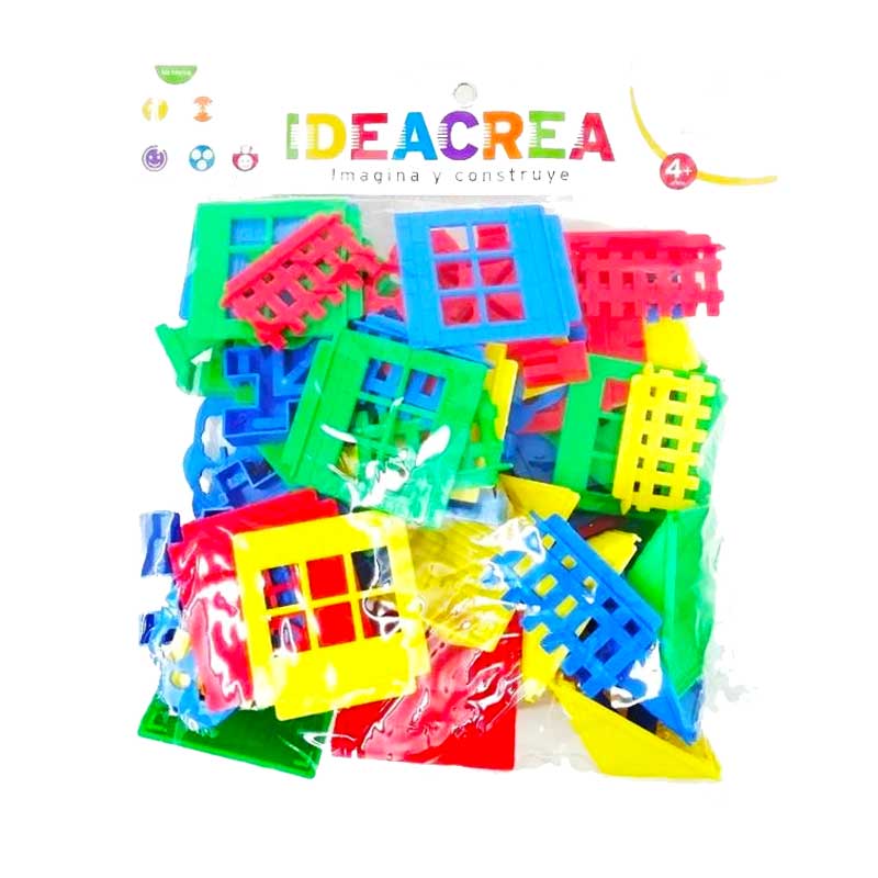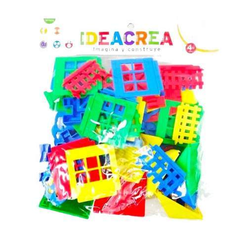 Bolsa de PVC con piezas en formas especiales para armar toda una villa, 48 pzas con colores vivos, instructivo para realizar construcción. Con Arma Villa, su pequeño (a) pasara horas de diversión construye casas y espacios propios de un pequeño arquitecto.